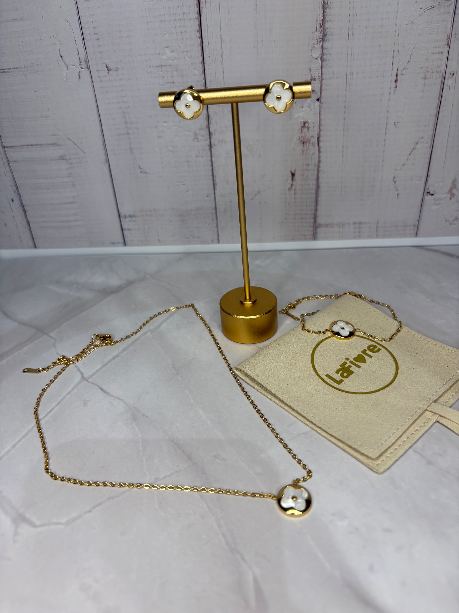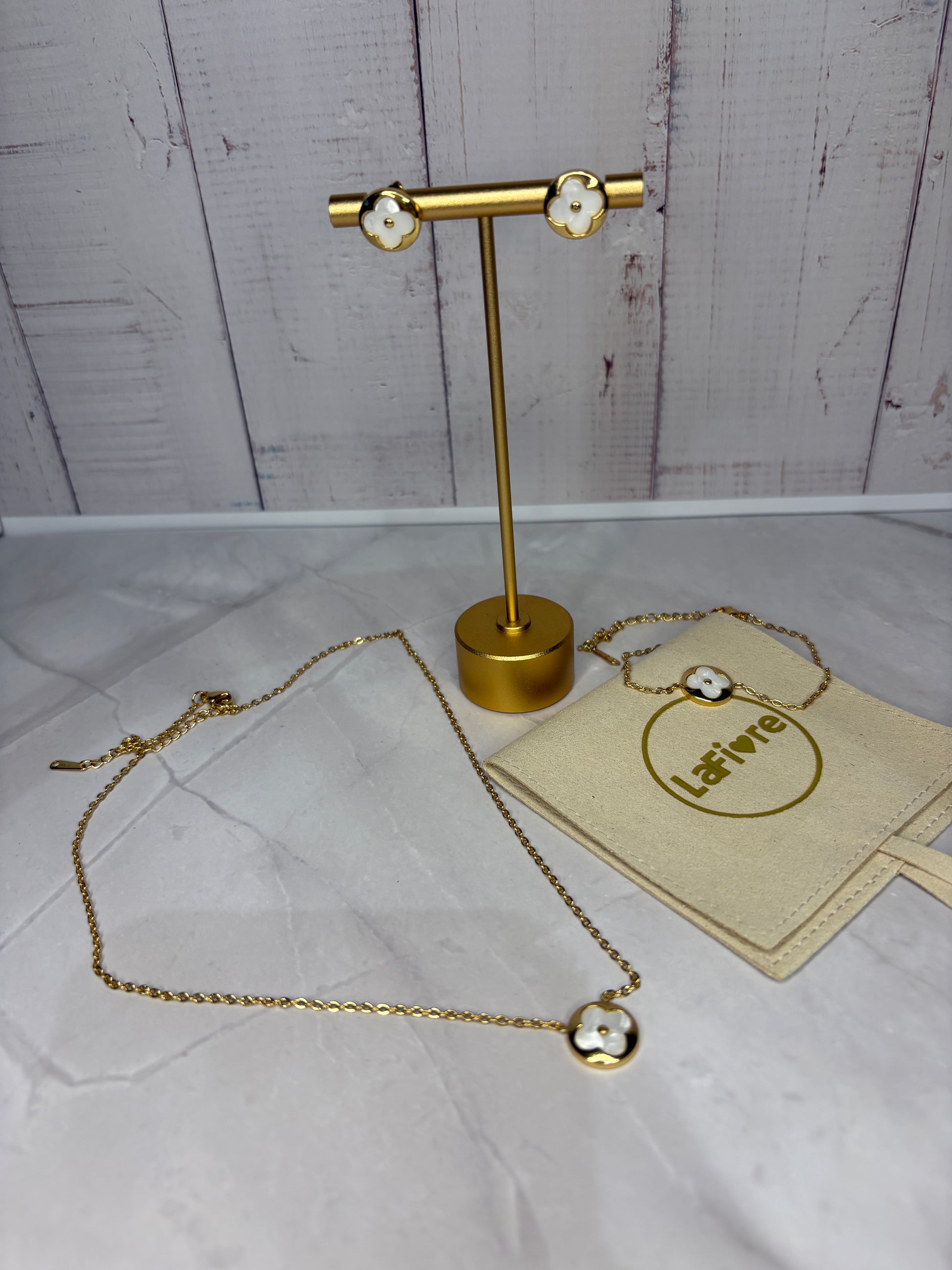 Bring elegance and a touch of luck to your everyday style with this stunning 3-piece clover jewelry set. Crafted from high-quality stainless steel and finished in rich gold plating, each piece is water-resistant, non-tarnish, and made to shine.