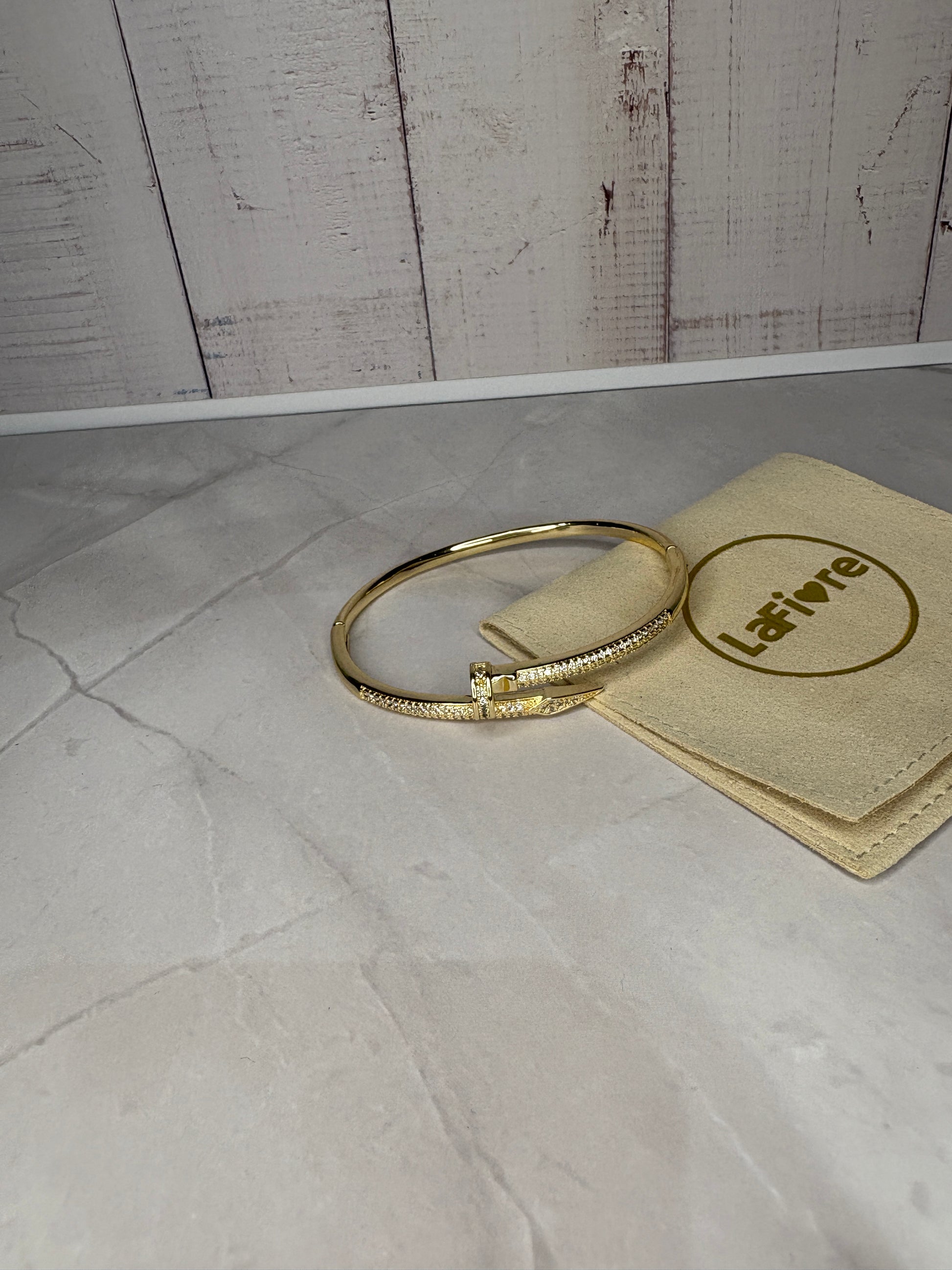Bling Nail Bangle – Gold Stainless Steel, Tarnish-Free