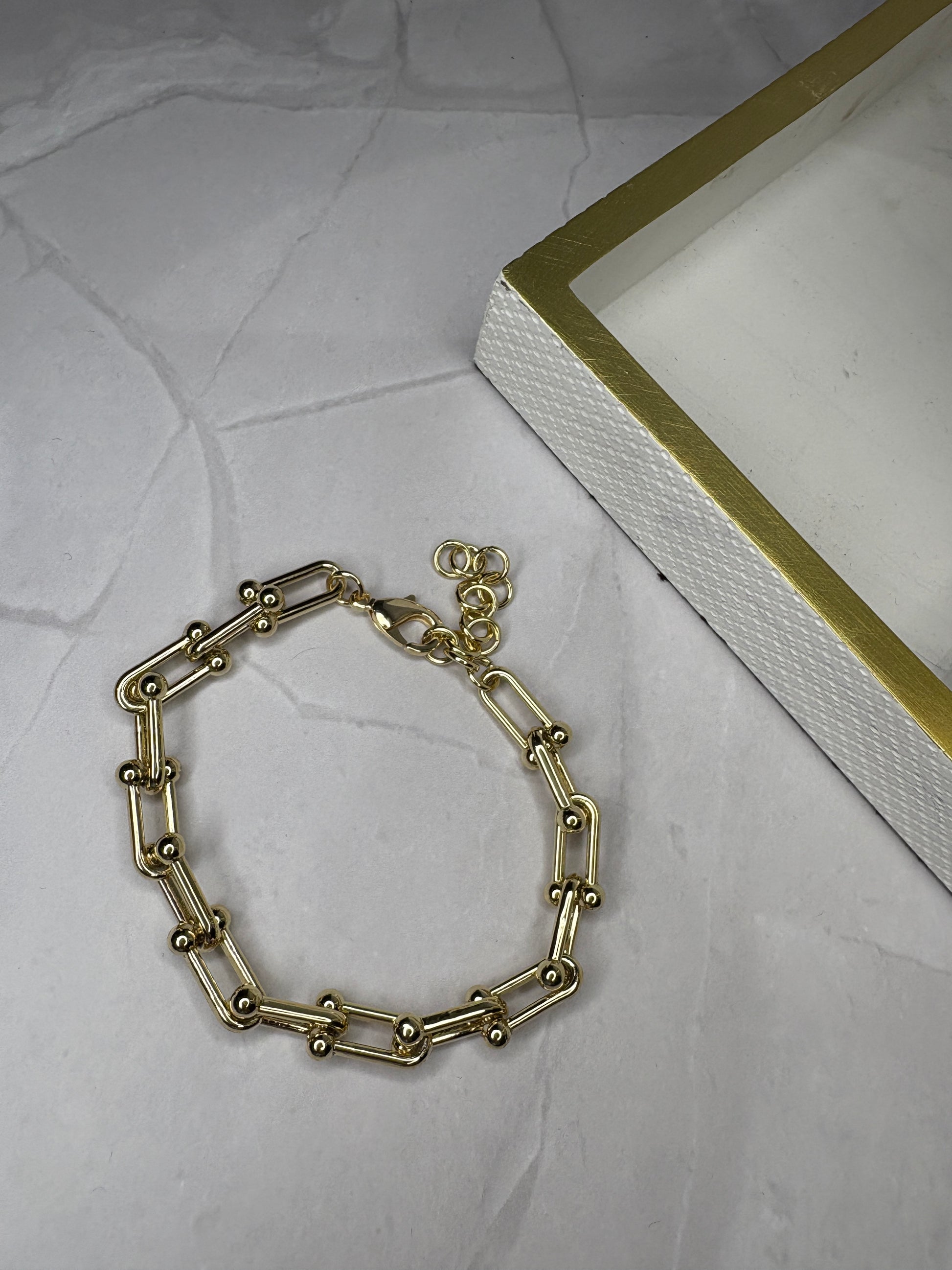 Chic and timeless, this gold plated chain bracelet adds effortless elegance to any look. Crafted for shine and durability, it’s perfect for layering or wearing solo.