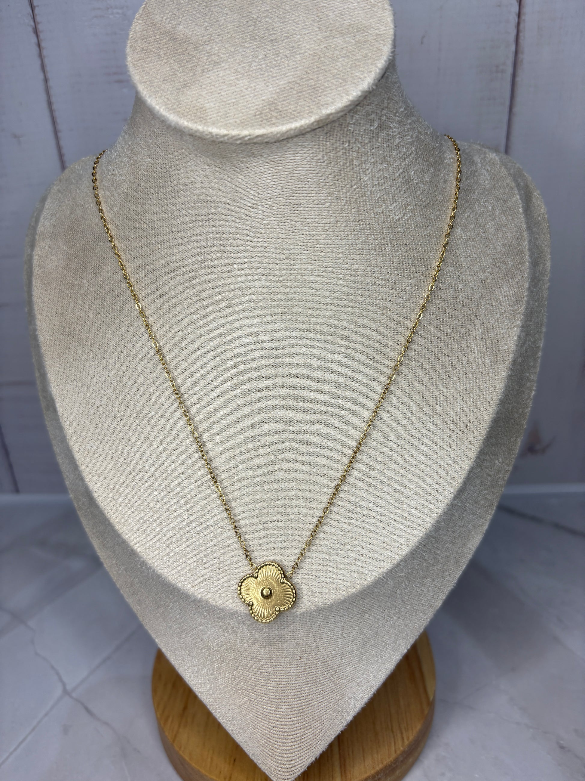 Gold Clover Charm Necklace – Stainless Steel, Non-Tarnish