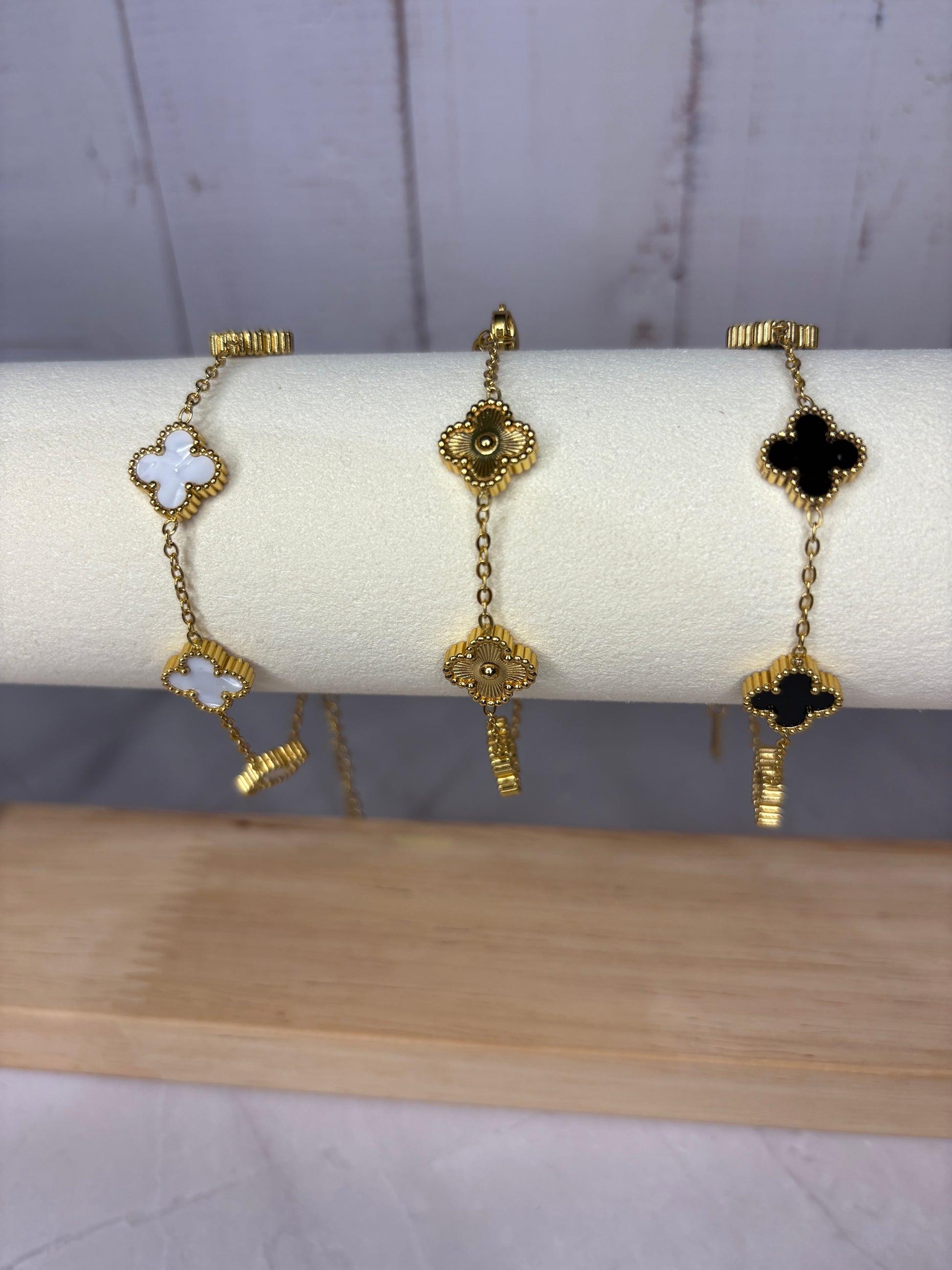 Elegant and timeless, this bracelet features a delicate white enamel clover charm set on an 18K gold-plated stainless steel chain. Designed to be both stylish and durable, it’s fully adjustable, non-tarnish, and water-resistant — perfect for everyday wear.