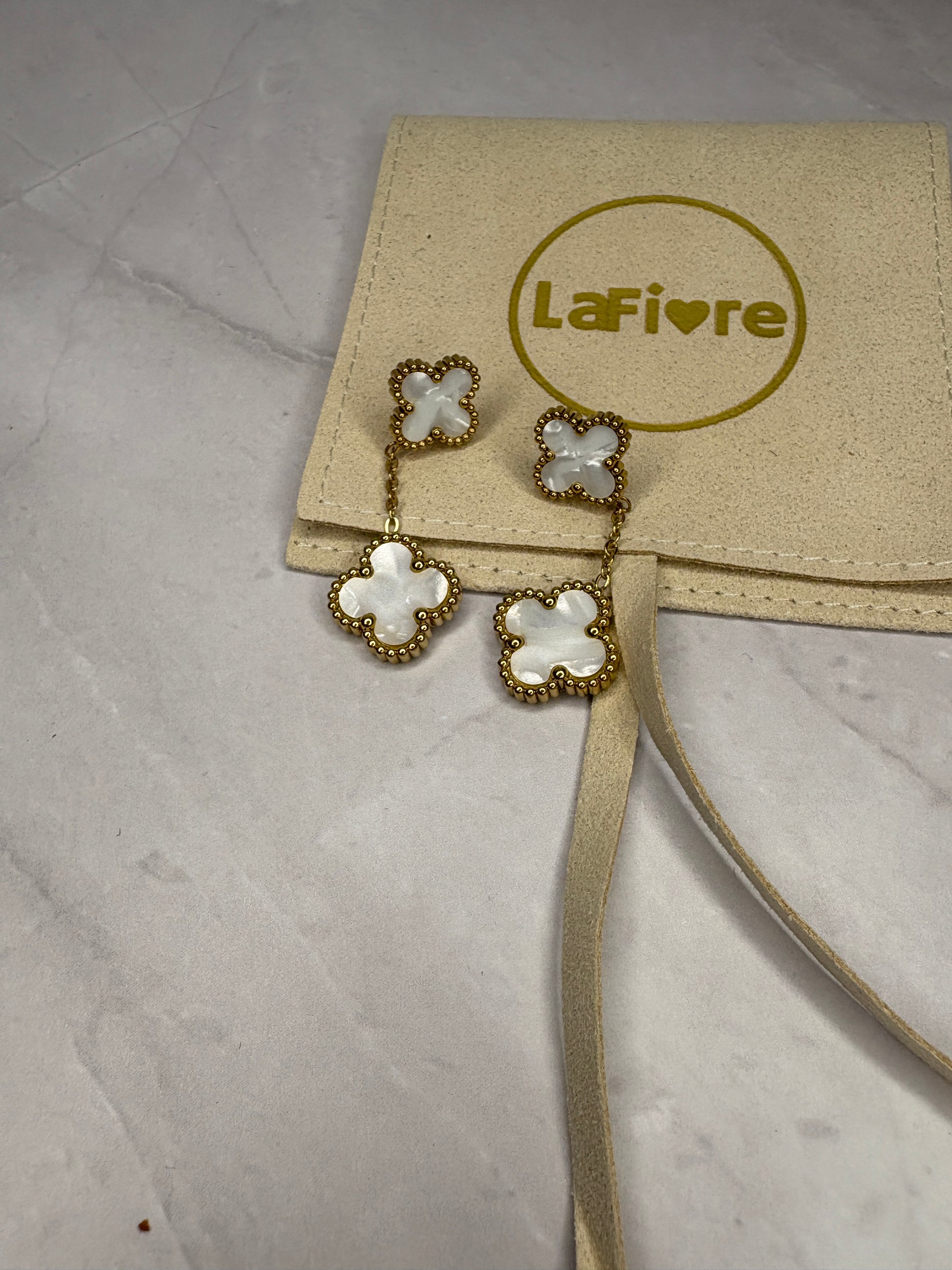✨ White Enamel Gold Clover Drop Earrings — Non-Tarnish Stainless Steel