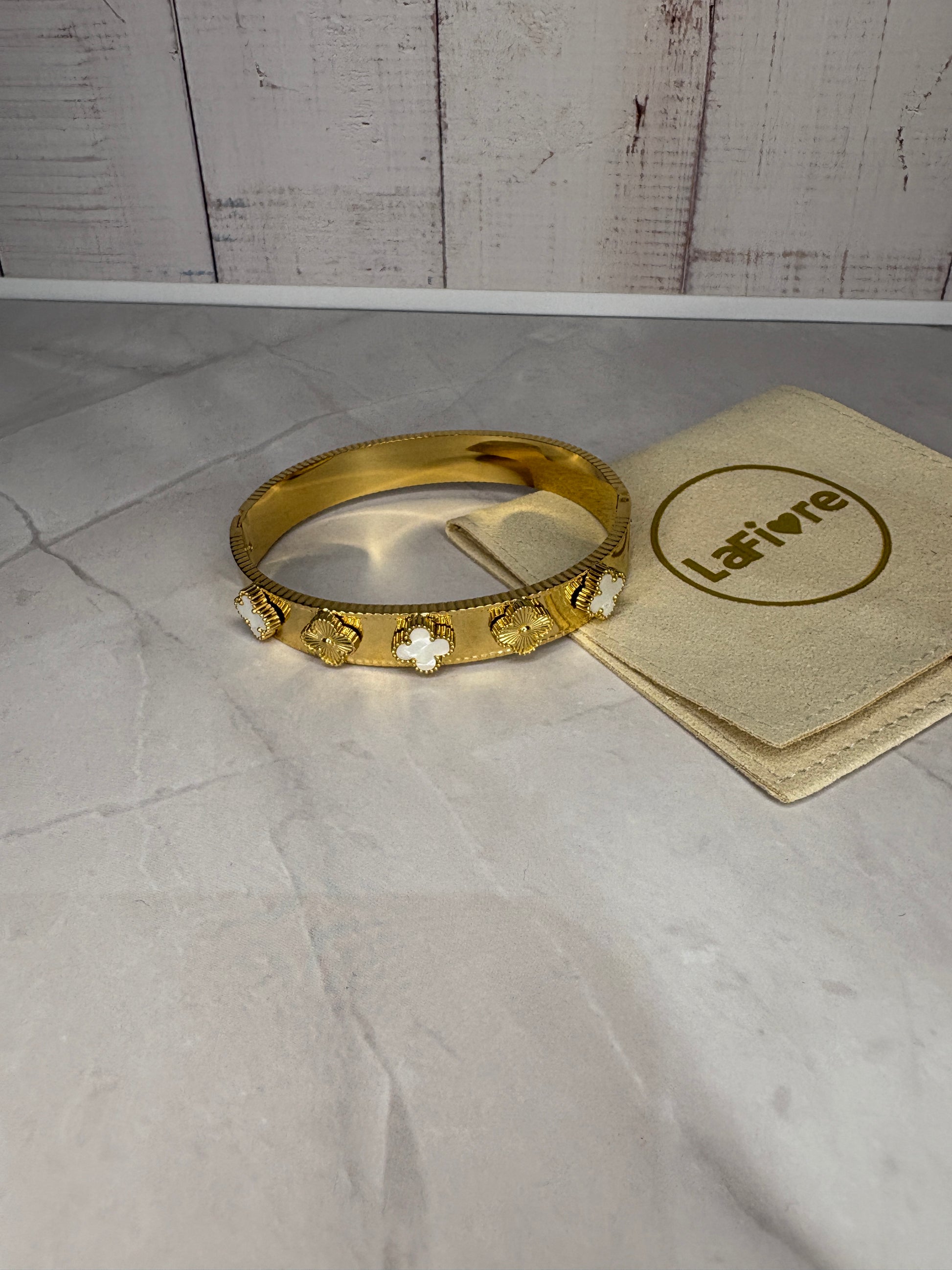 White & Gold Clover Bangle